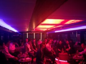 船内では音楽に合わせた照明の変化、お好きな音楽を流すこともできます。DJを呼ぶことも可能です。